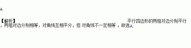 A. 对角线相等 B. 两组对边分别平行