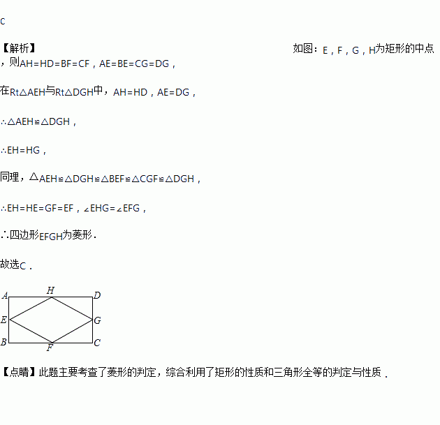 顺次连接矩形ABCD各边中点得到四边形EFGH,它的形状是( )