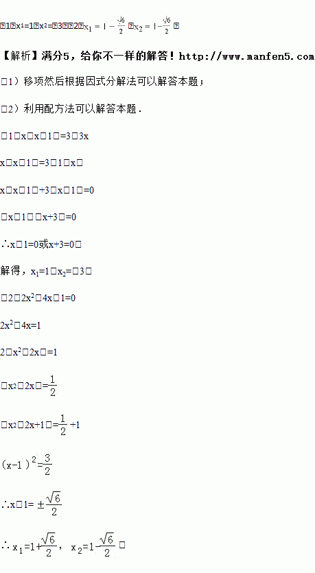 (2)2x2﹣4x﹣1=0(用配方法)