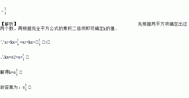 若多项式 x2+kx+是完全平方式,则 k 的值等于_____.