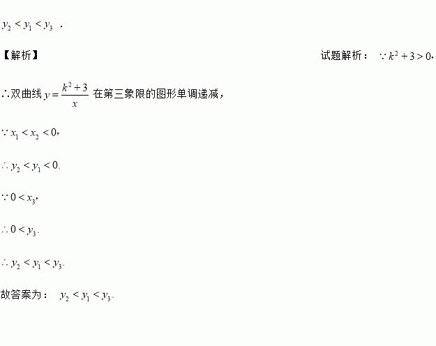 在双曲线上有三个点A(x1,y1),B(x2,y2),C(x3,y3),若x1<x2<0<x3,则y1,y2 ,y3的大小关系是______________.(用“<”连接)