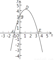 如图,已知抛物线与轴、轴分别相交于点A(-1,0)和B(0,3),其顶点为D.