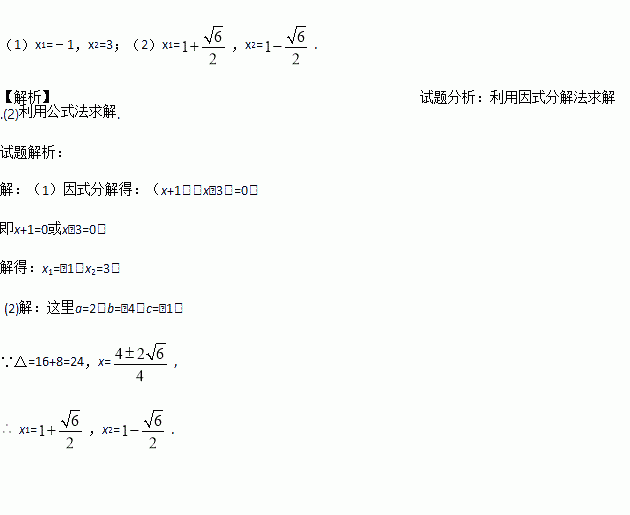 解方程:(1)x2﹣2x﹣3=0; (2)2x2﹣4x﹣1=0.