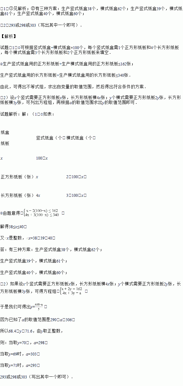 (2)若有正方形纸162张,长方形纸板a张,做成上述两种纸盒,纸板恰好用完.已知290<a<306.求 a的值.