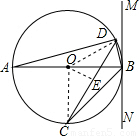 (2)连接OD、OC,过点O作OE⊥CD于点E,根据圆周角定理,可求得∠BOC和∠DOB的度数,故可知:∠COD的度数,在等腰△OCD中,可将CD的长求出.