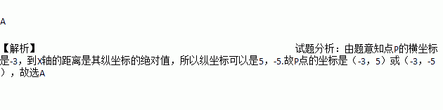 P点横坐标是-3,且到x轴的距离为5,则P点的坐标是( )