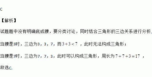 等腰三角形两边长分别为3和7,那么它的周长为( )