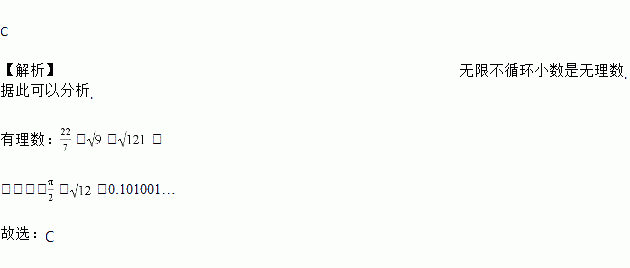,0.101001…(每两个1之间的0逐渐增加一个)中,无理数有( )个.