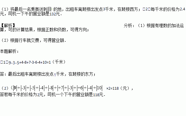 (1)将最后一名乘客送到目的地,出租车离鼓楼出发点多远?在鼓楼什么方向?
