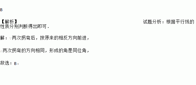 一学员在广场上练习驾驶汽车,两次拐弯后,行驶方向与原来的方向相同,这两次拐弯的角度可能是( )