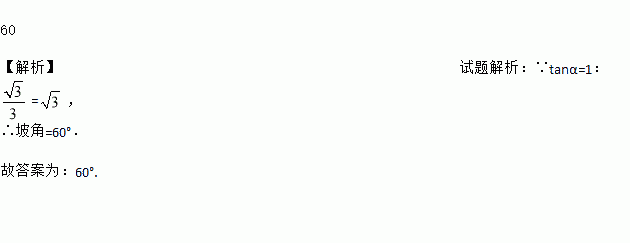 如果一个斜坡的坡度i=1: ,那么该斜坡的坡角为_____度.