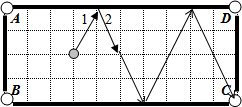 如图,球沿图中箭头方向击出后碰到桌子的边缘会反弹,其中∠1叫做入射角,∠2叫做反射线,如果每次的入射角总是等于反射角,那么球最后将落入桌子四个顶角处的球袋中的