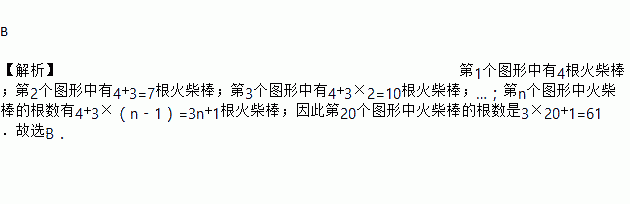 如图由火柴棒拼出的一系列图形中,第n个图形是由n个正方形组成的,通过观察可以发现,第20个图形中火柴棒的根数是( )