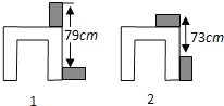 利用两块长方体木块测量一张桌子的高度.首先按图①方式放置,再交换两木块的位置,按图②方式放置.测量的数据如图,则桌子的高度是( )