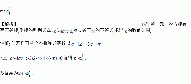 关于x的一元二次方程x2﹣3x﹣m=0有两个不相等的实数根,则m的取值范围________.