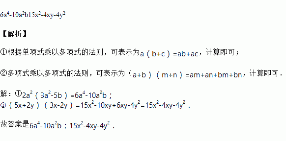 ①2a2(3a2-5b)=______. ②(5x+2y)(3x-2y)=________.