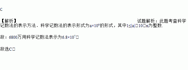 A. 6800×104 B. 6.8×104 C. 6.8×107 D. 0.68×108