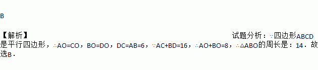 如图,?ABCD的对角线AC,BD相交于点O,且AC+BD=16,CD=6,则△ABO的周长是( )