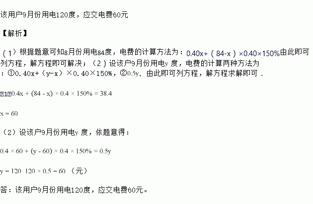 (2)如果该户9月份的电费平均为每度0.5元,那么该用户9月份用电多少度?应交电费多少元?
