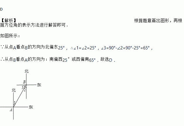 A. 南偏东65° B. 南偏西65° C. 南偏东25° D. 南偏西25°