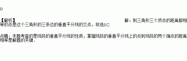 到三角形三个顶点的距离都相等的点是这个三角形的( )