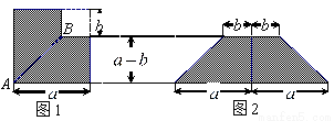 如图1,从边长为的正方形纸片中剪去一个边长为b的小正方形,再沿着线段AB剪开,把剪成的两张纸片拼成如图2的等腰梯形.