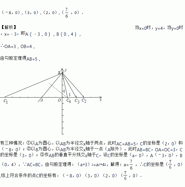 一次函数y=x+4分别交x轴、y轴于A、B两点,在x轴上取一点,使△ABC为等腰三角形,则这样的点C的坐标为 .