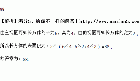 一个长方体的主视图与俯视图如图所示,则这个长方体的表面积是_________.