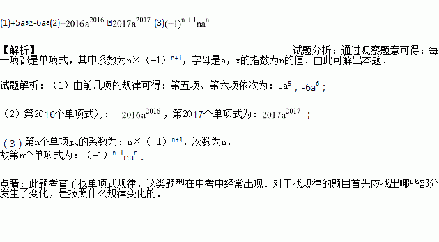 (1)a、-2a2、3a3、-4a4,________,__________;