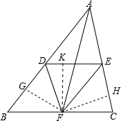 解:过F分别作FG⊥AB于G,FH⊥AC于H,FK⊥DE于K,