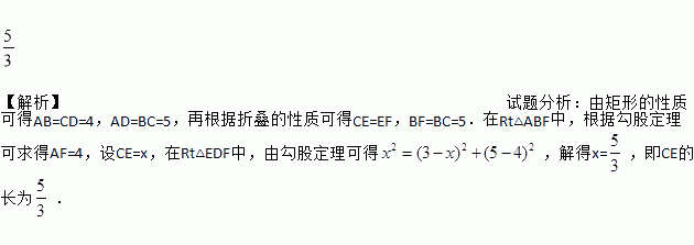 如图,在矩形ABCD中,AB=3,BC=5,在CD上任取一点E,连接BE,将△BCE沿BE折叠,使点C恰好落在AD边上的点F处,则CE的长为_____.