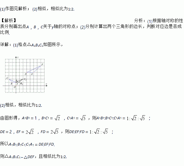 (2)请判断△A1B1C1与△DEF是否相似,若相似,请写出相似比;若不相似,请说明理由.