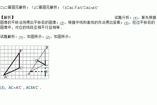 (1)在给定方格纸中画出平移后的△A′B′C′;