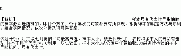 A、利用当地的七月份的日平均最高气温值估计当地全年的日最高气温