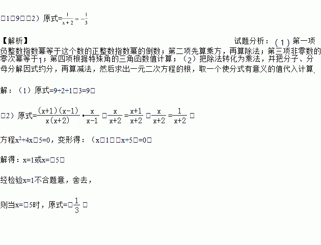 (1)计算(﹣)﹣2﹣16÷(﹣2)3+(π﹣tan60°)0﹣2cos30°;