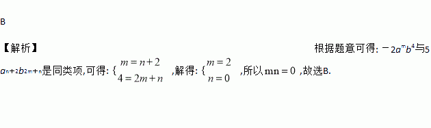 (毕节中考改编)若-2amb4与5an+2b2m+n可以合并成一项,则mn的值是( )