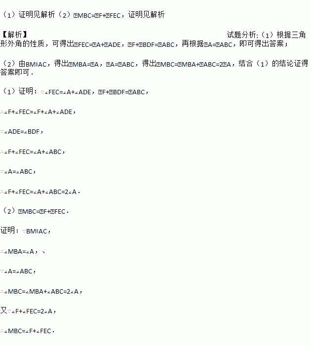 (1)求证:∠F+∠FEC=2∠A;