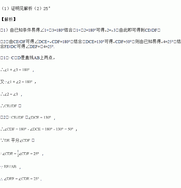 已知:如图,C、D是直线AB上两点,,DE平分![]()