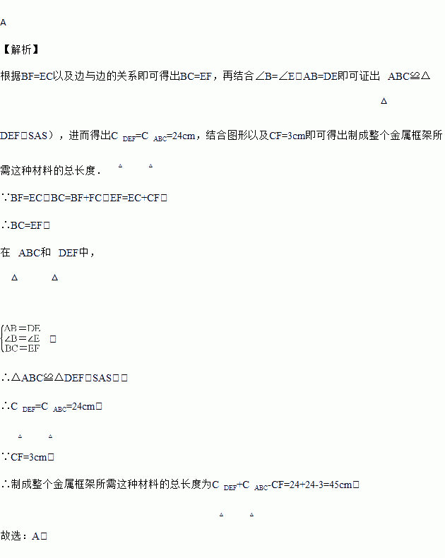 如图,是工人师傅用同一种材料制成的金属框架,已知,,,其中的周长为24cm,,则制成整个金属框架所需这种材料的总长度为( )