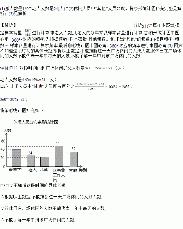 (3)根据以上数据,能否估计一年中(以365天计)到该广场休闲的人数?为什么?