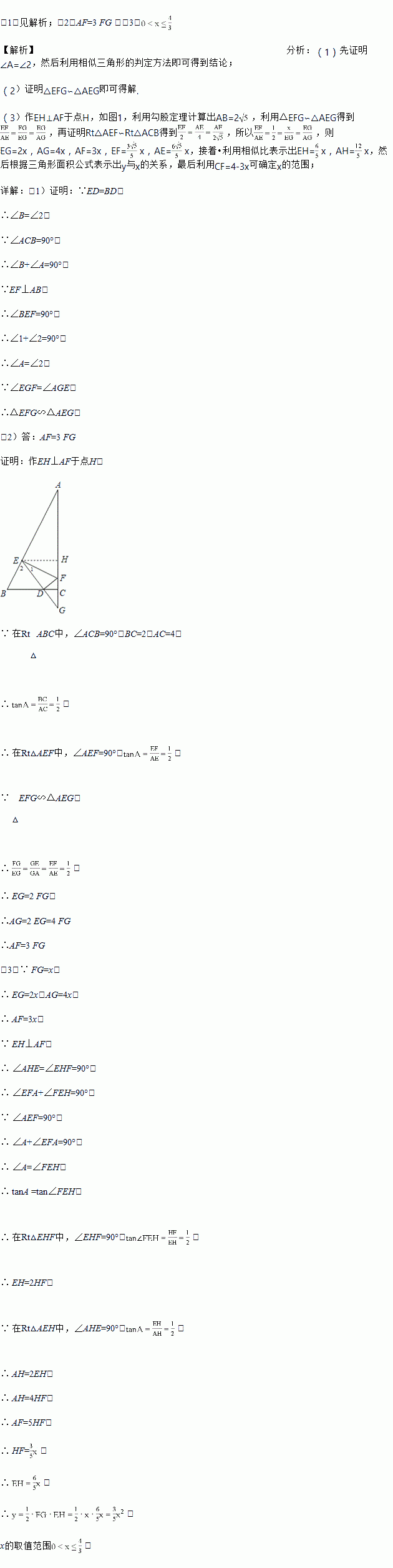 (3)设FG=x,△EFG的面积为y,求y关于x的函数解析式,并直接写出x的取值范围;