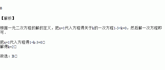 已知一元二次方程x2+kx-3=0有一个根为1,则k的值为( )