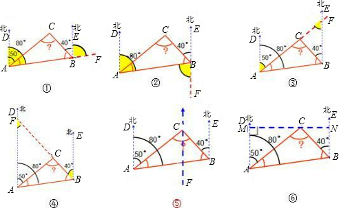 如图,C岛在A岛的北偏东50°方向,B岛在A岛的北偏东80°,C岛在B岛的北偏西40°,A、B两岛相距100km.