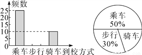 如图是某班全体学生到校时乘车、步行、骑车人数的频数分布直方图和扇形统计图(两图都不完整),则下列结论中错误的是( )