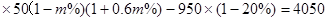 ¶þÔÂÀûÈó£º4050Ôª ÈýÔ¡¢ËÄÔ¡¢ÎåÔ´¦ÀíÁ¿£º50£¨1£m%£©¶ÖÈýÔ¡¢ËÄÔ¡¢ÎåÔ¼۸ñ£º100£¨1+0.6 m%£©ÔªÎåÔ³ɱ¾£º950 (1£20%)Ôª ÎåÔÂÀûÈó£º100![]()