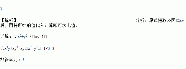 若已知x2+y2=3,xy=1,则x3y+xy3=____________.