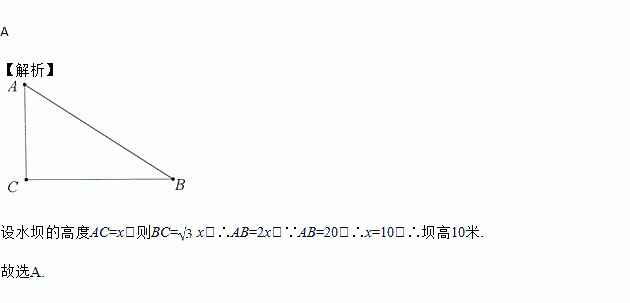 某水坝的坡度i=1:,坡长AB=20米,则坝的高度为( )