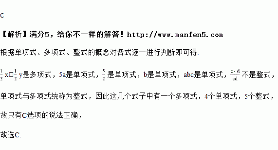 A. 3个单项式,3个多项式 B. 2个单项式,3个多项式
