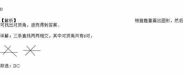 如图,三条直线两两相交,其中对顶角共有 ( )