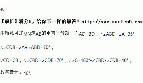 在△ABC中,按以下步骤作图:①分别以A,B为圆心,大于AB的长为半径画弧,相交于两点M,N;②作直线MN交AC于点D,连接BD.若CD=BC,∠A=35°,则∠C=_____.